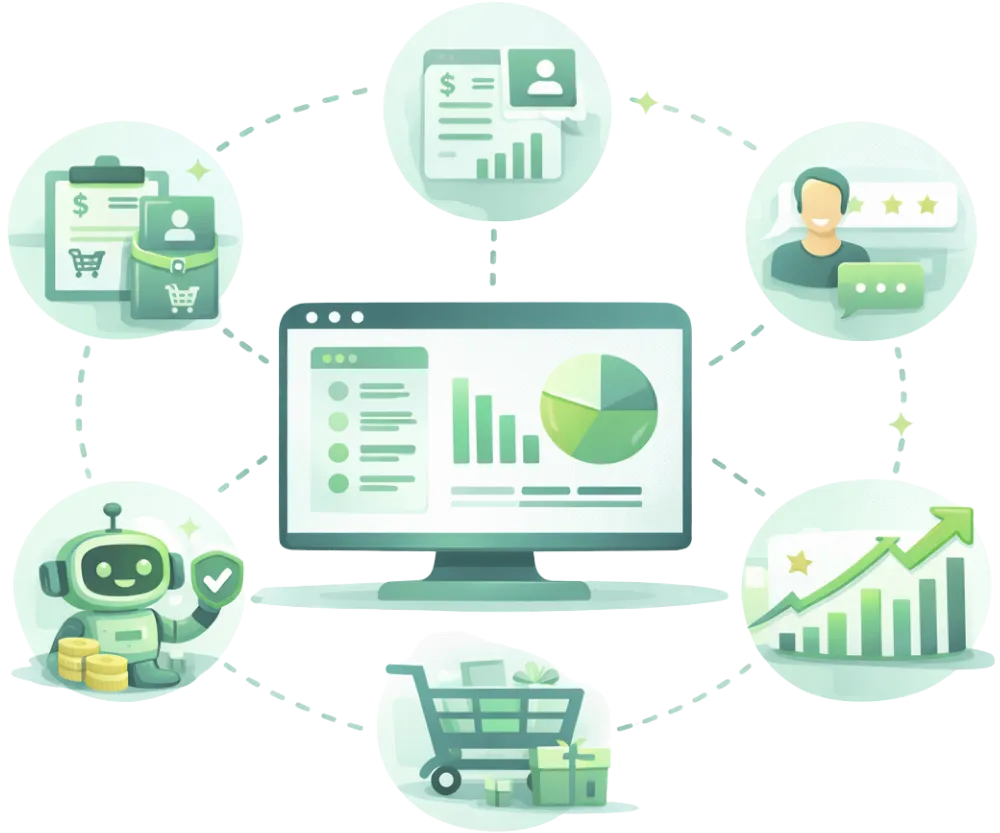 Our service turns your store into a connected ecosystem powered by AI automation, designed to: